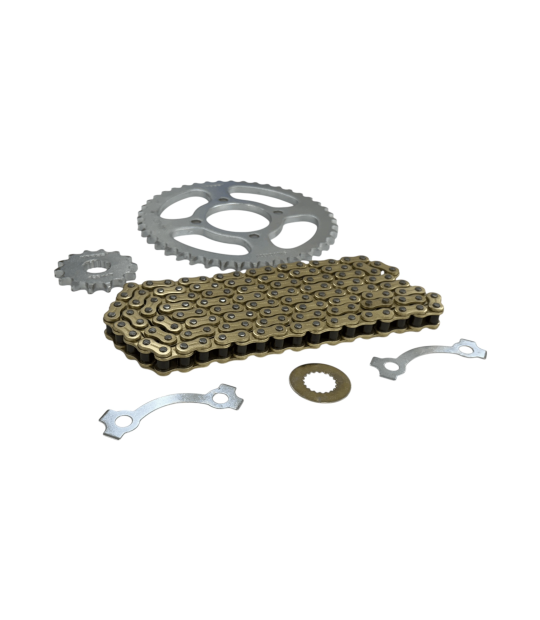 El kit de arrastre Kross incluye todo lo necesario para una transmisión eficiente y duradera: cadena, piñón y corona de alta resistencia. Fabricado con materiales de primera calidad y diseño optimizado, garantiza una transmisión suave, menor pérdida de potencia y mayor vida útil. Ideal para quienes buscan un rendimiento superior y un mantenimiento seguro para su motocicleta.